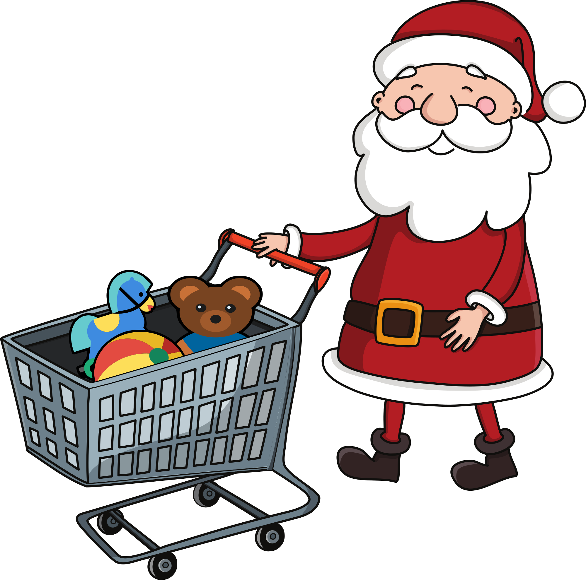 Santa Claus Pushing Empty Shopping Cart