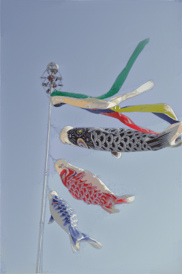 These carp streamers are often hung up around children's day as a hope for sons to grow up strong (based on a public domain image from wikimedia by Fg2)