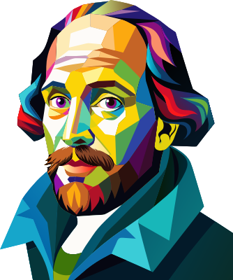- William Shakespeare Portrait Author English British Playwright Writer Bard Poet Man Male People Person Human Line Art Decorative Decoration Ornamental Colorful Prismatic Chromatic Rainbow ai_art Shakespeare