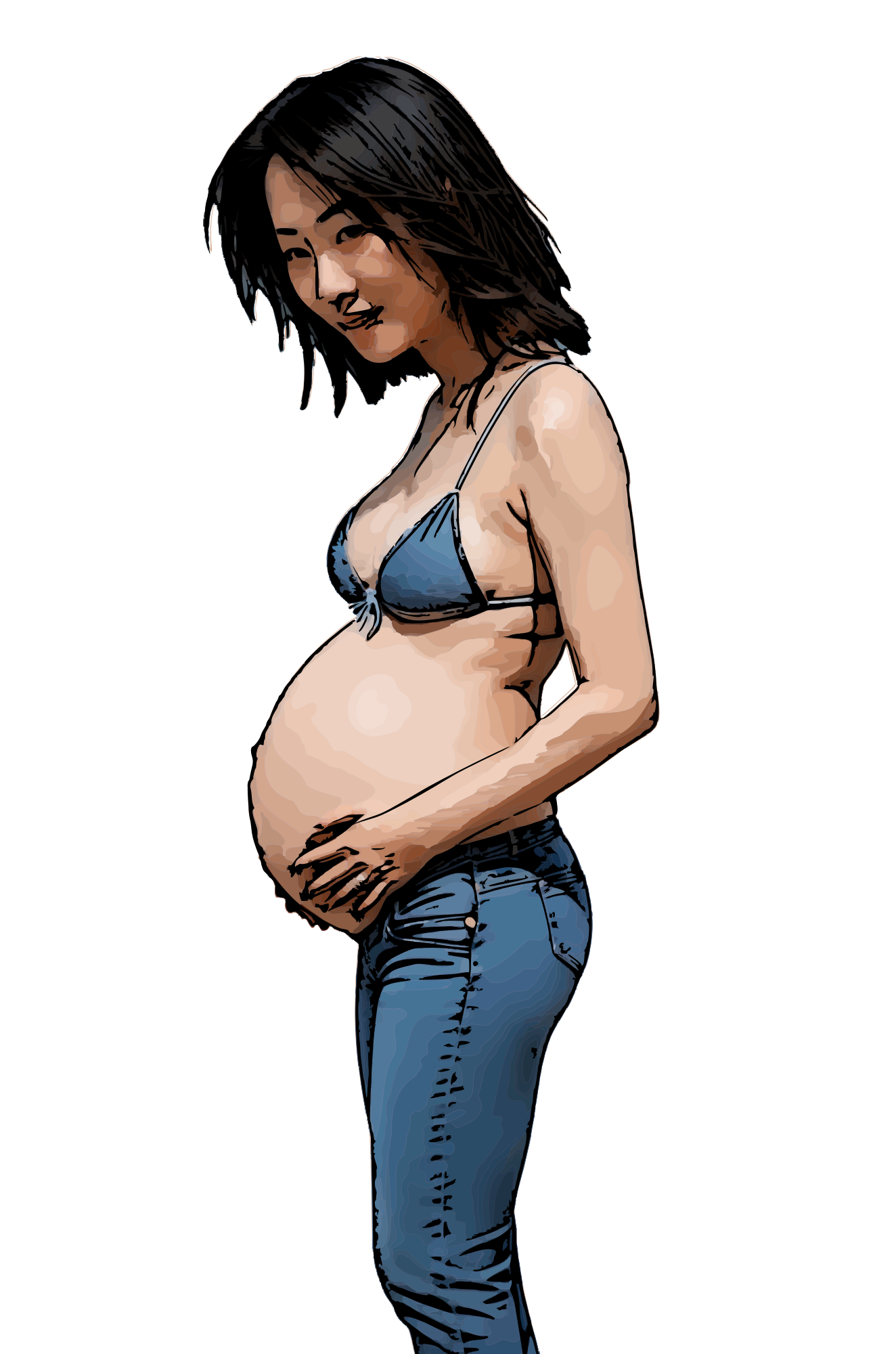 - pregnant mother motherhood jeans bikini maternity pregnancy mom mum Asian woman lady ai_art