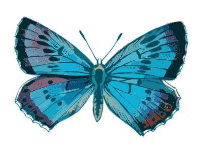 an old depiction of a blue butterfly
