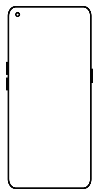 Outline of a OnePlus Nord CE 5G EB2103 smartphone. Created by scanning the phone in a flatbed scanner, then tracing it in Inkscape. Then using some path operations and manually cleaning up the button areas to crop just an outline.