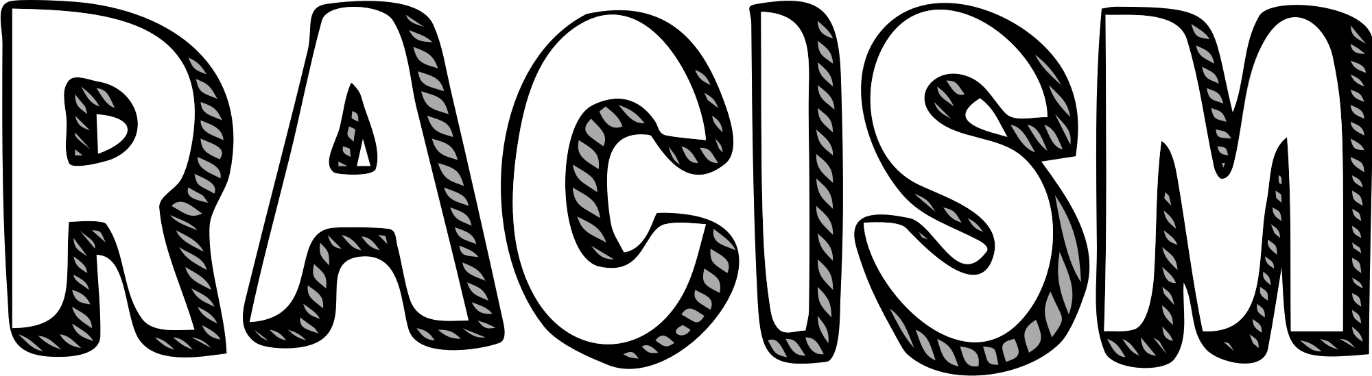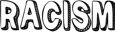 Racism in 3D block text with white letters and gray and black shading. Uses the zuka doodle freeware font by cove703.