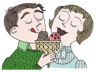 colour version of this retro couple eating some ice cream