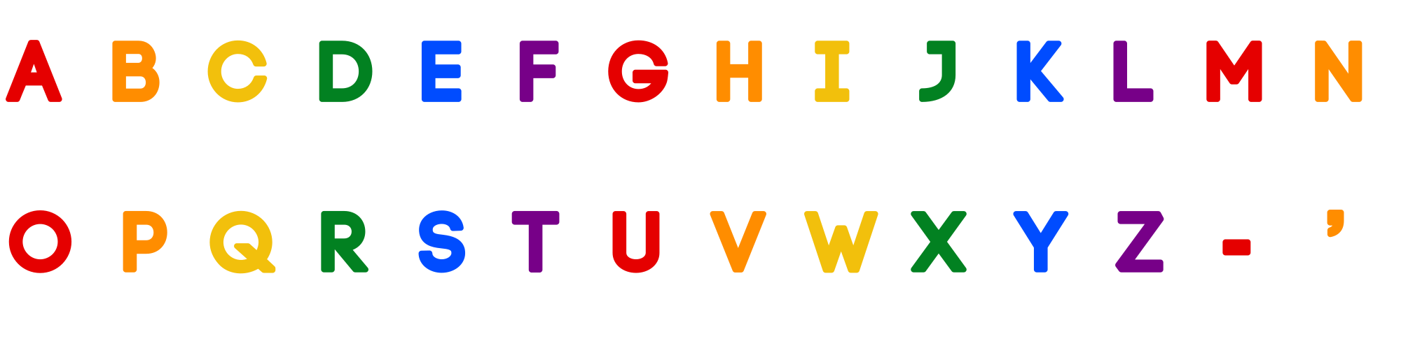 A-Z alphabet rainbow text
