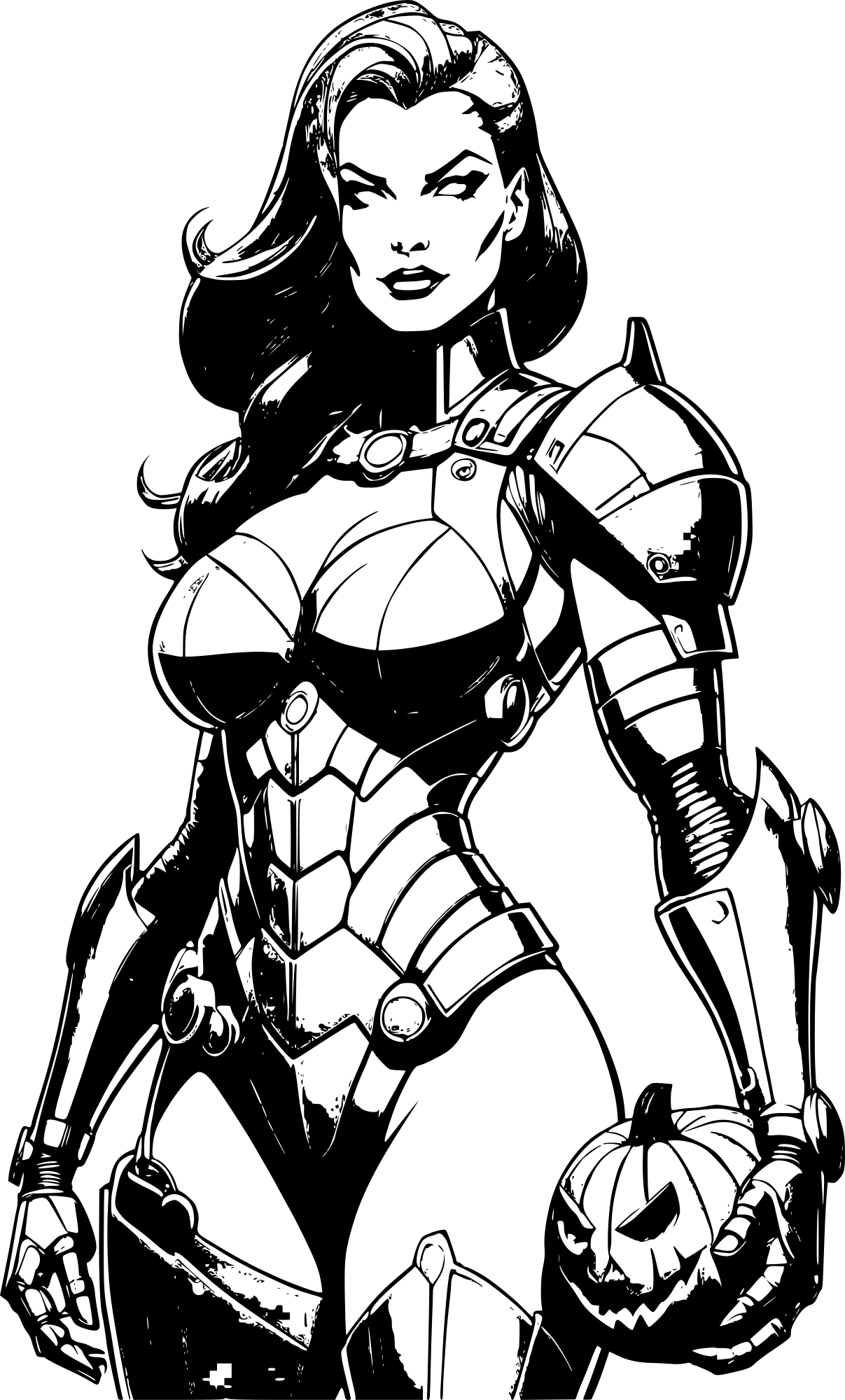 Cyborg woman with pumpkin