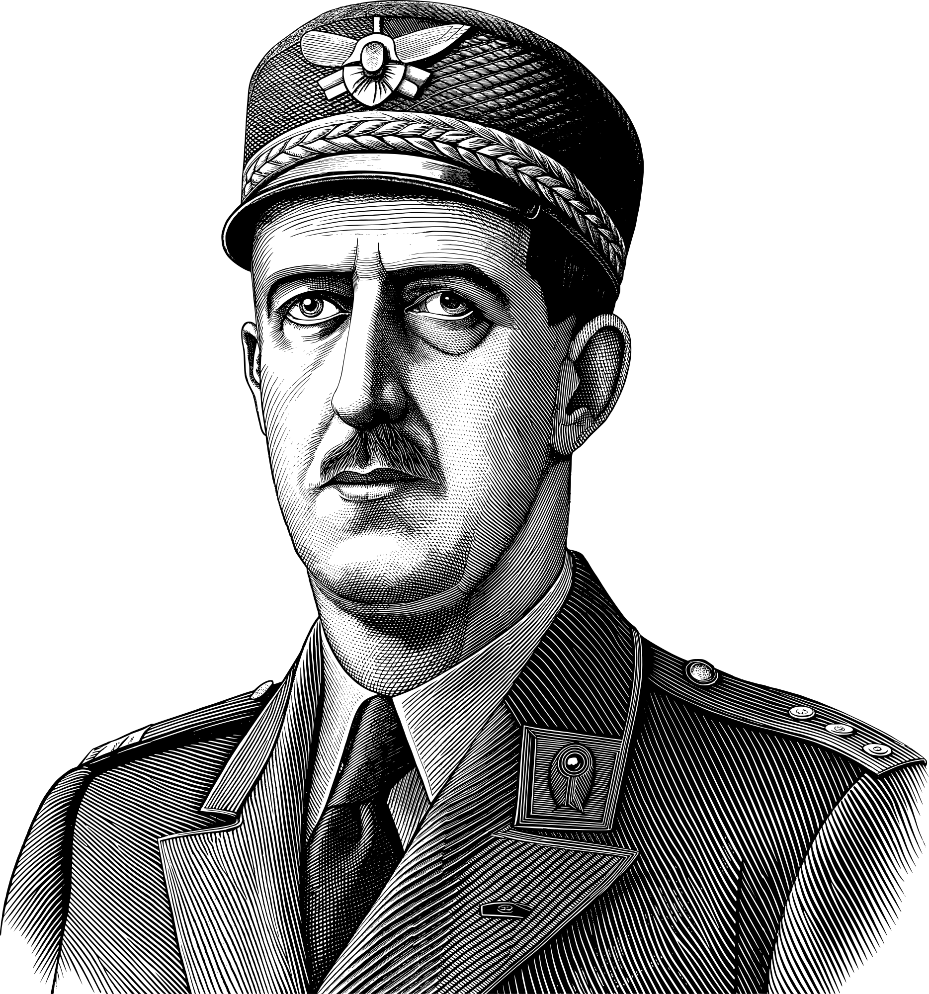 - Charles De Gaulle Portrait Man President Politician Statesman Military Soldier French France Human People Person Line Art Decorative Decoration Ornamental ai_art