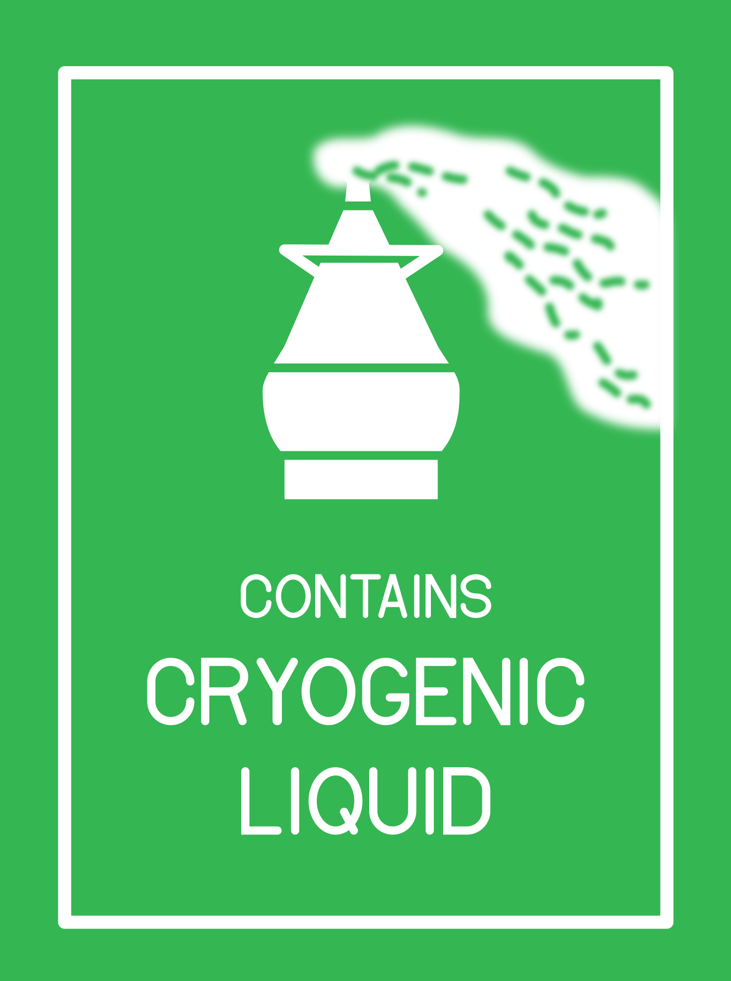 a green sign with a "cryogenic liquid" notice sign