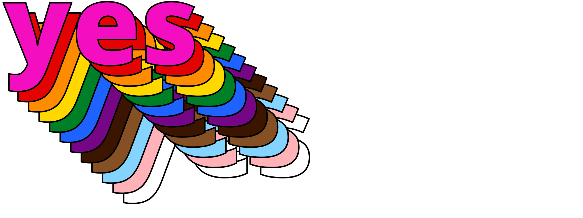 yes in pride flag colors, starting with hot pink