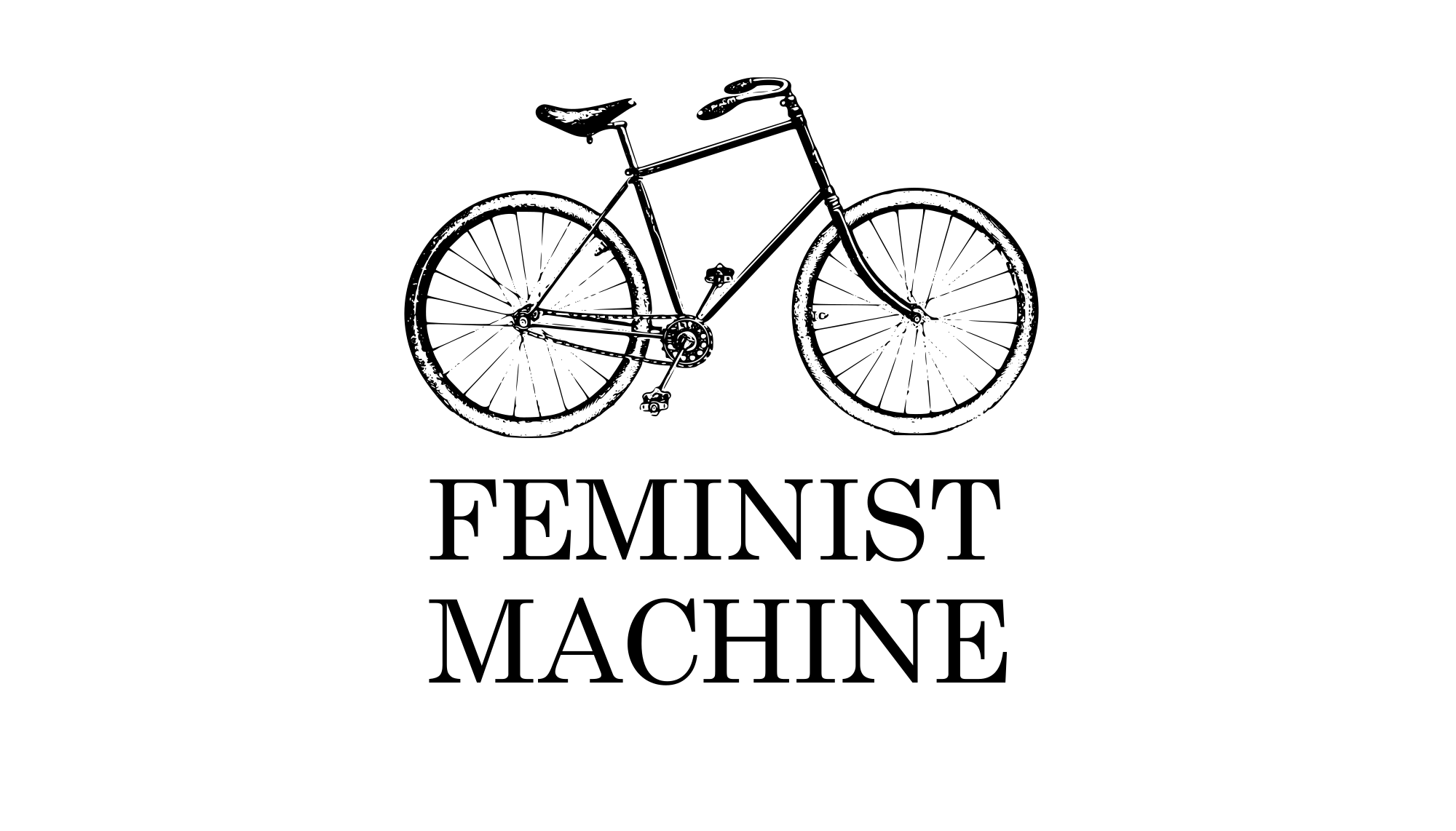 Old bicycle and Feminist Machine slogan.