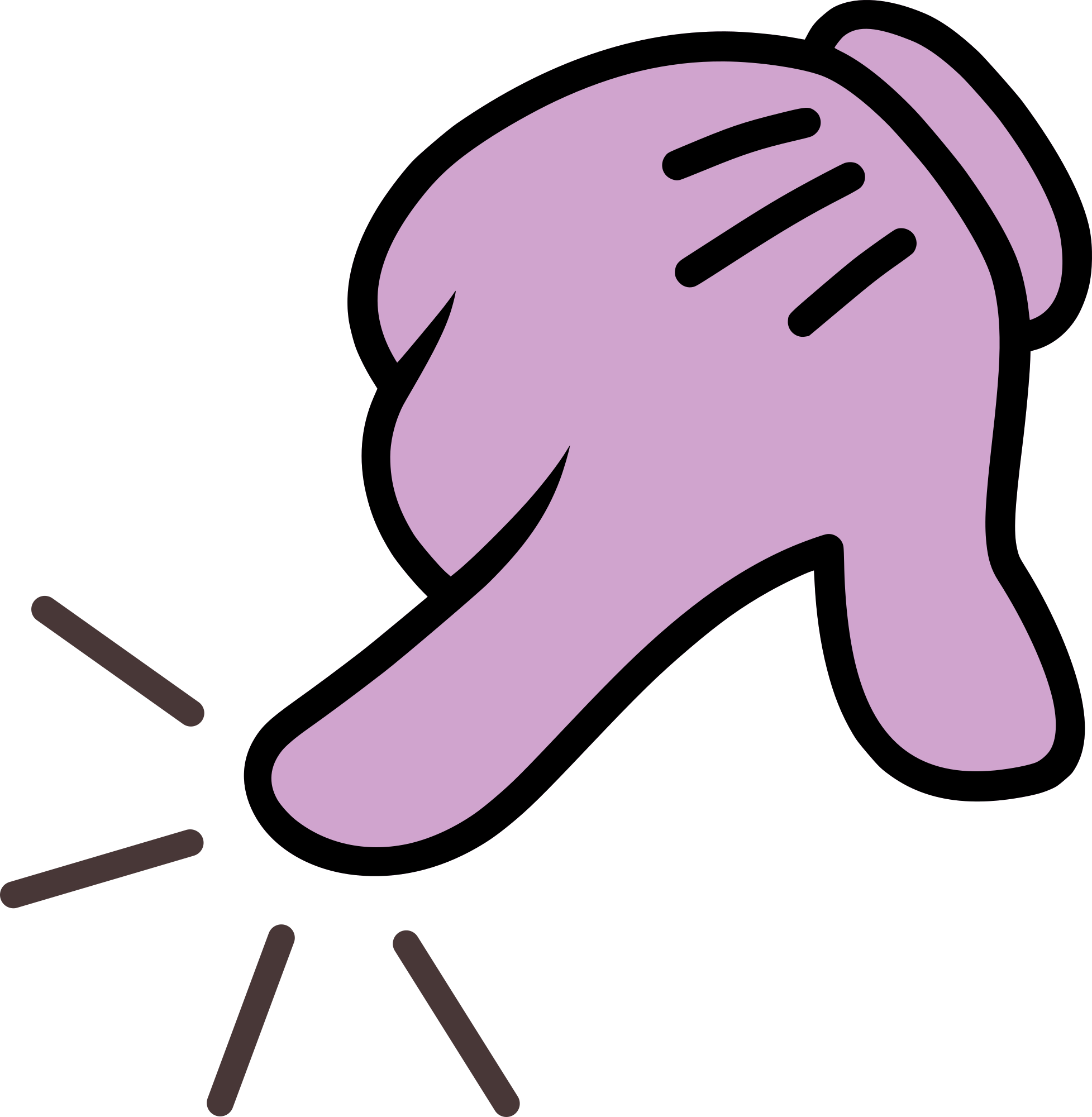 Coloured hand / glove clicking on a surface. Fully customizable svg.
