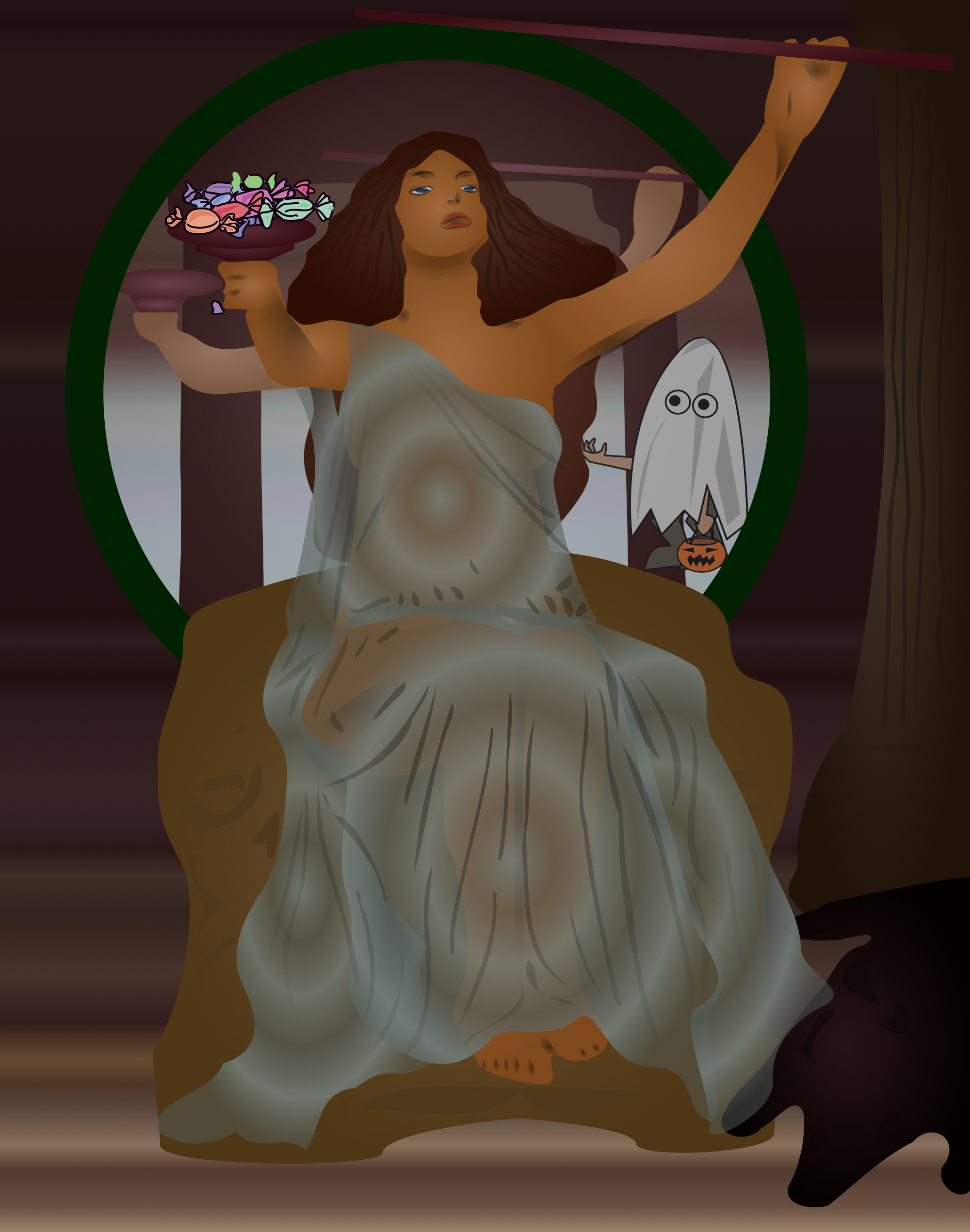circe makes lots of things besides potions. her candies are well known to the (brave) trick or treaters on the (deserted) island where she lives. and her valentines day candies are guaranteed to work! but who in this picture is more likely to trick than treat ? thalia wants to know :-)