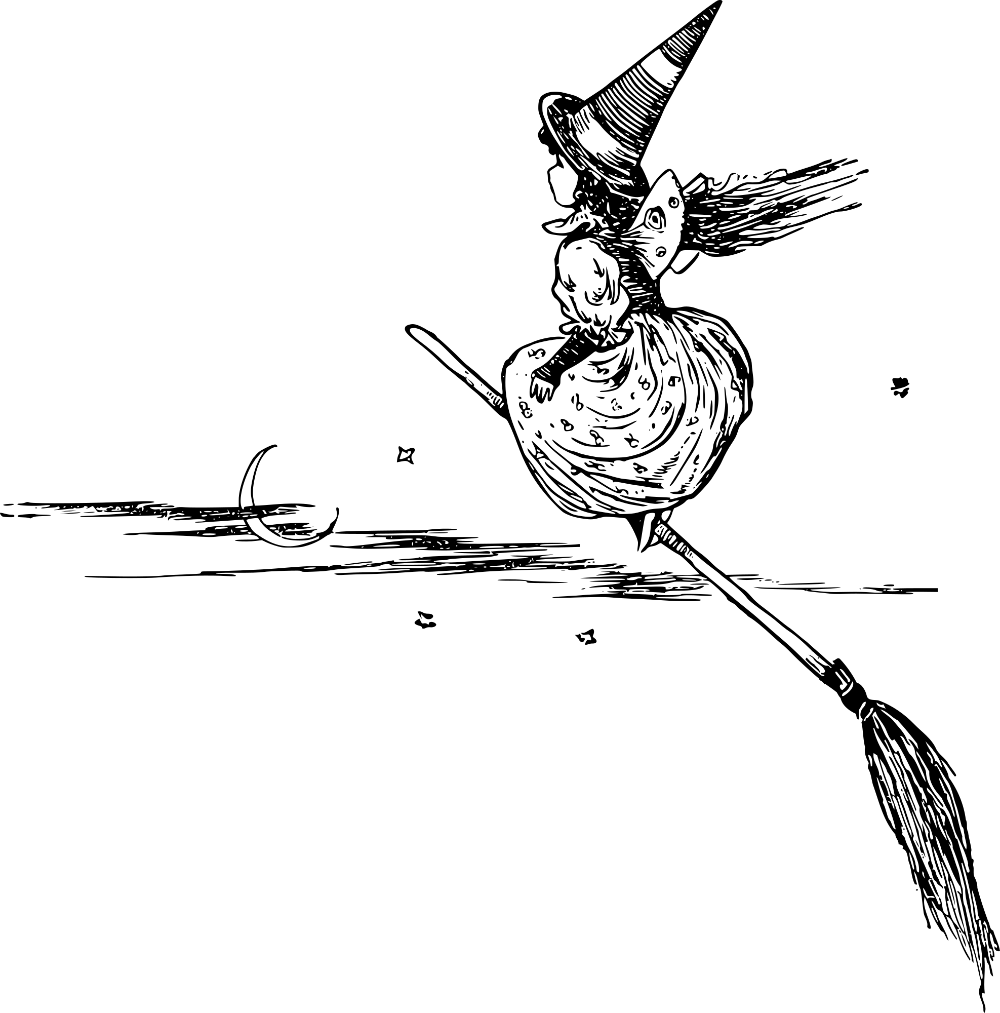 my modern sensibilities made me feel like the broomstick was backwards (although I'm sure it can be any sort of way) and so I thought I'd remix it to be pointed the other direction. It's not the original artist's vision though, so I took off the signature etc.