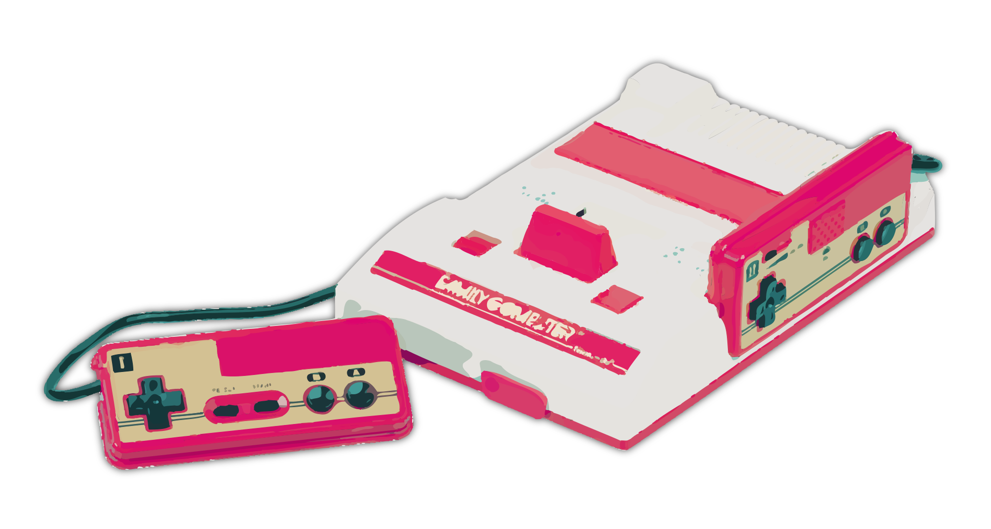 This is the colour and design of the Japanese version of the Nintendo Entertainment System (known locally as a "family computer" aka "famicom") This one doesn't use any corporate names or logos etc.