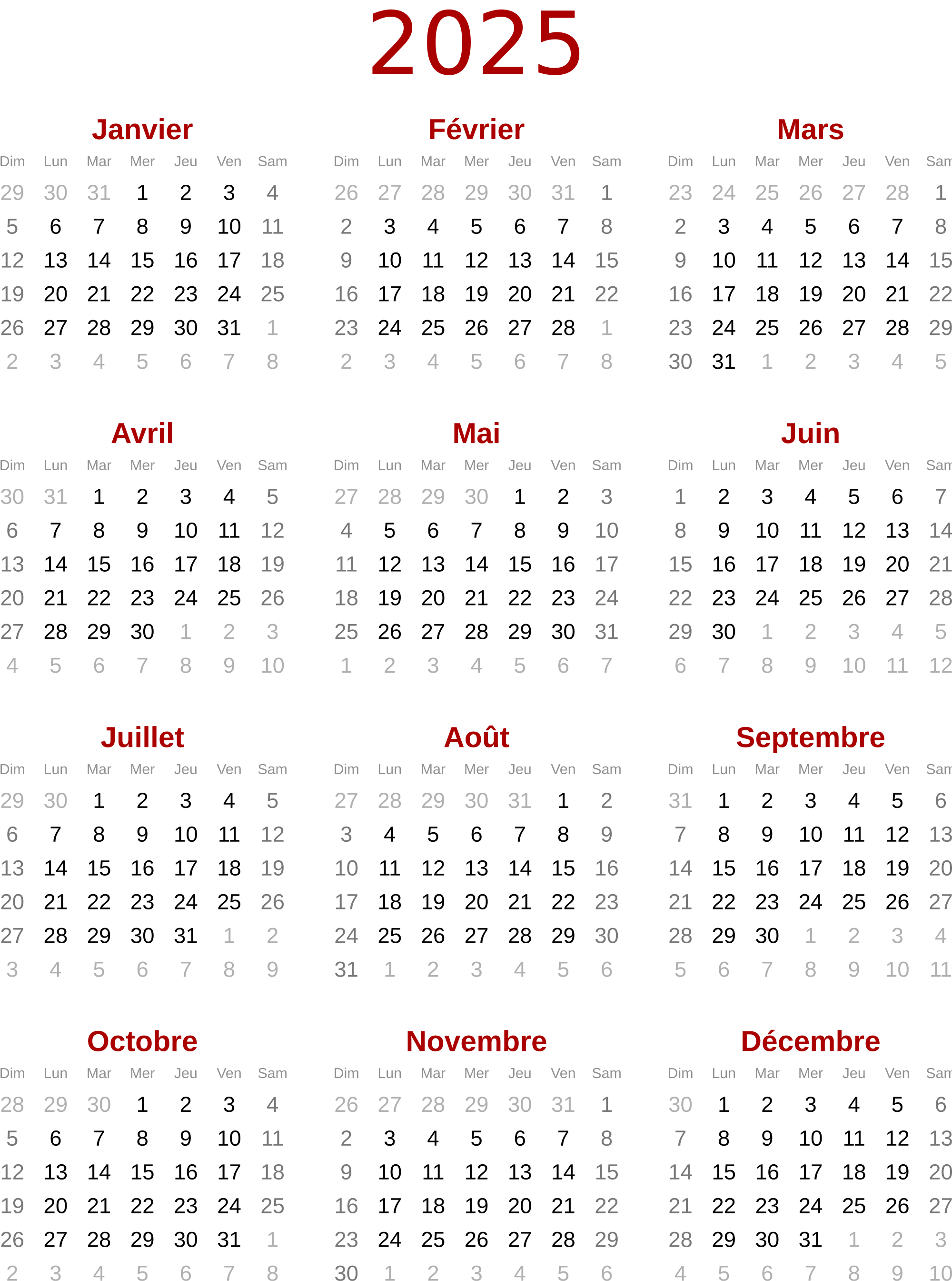 2025 calendar