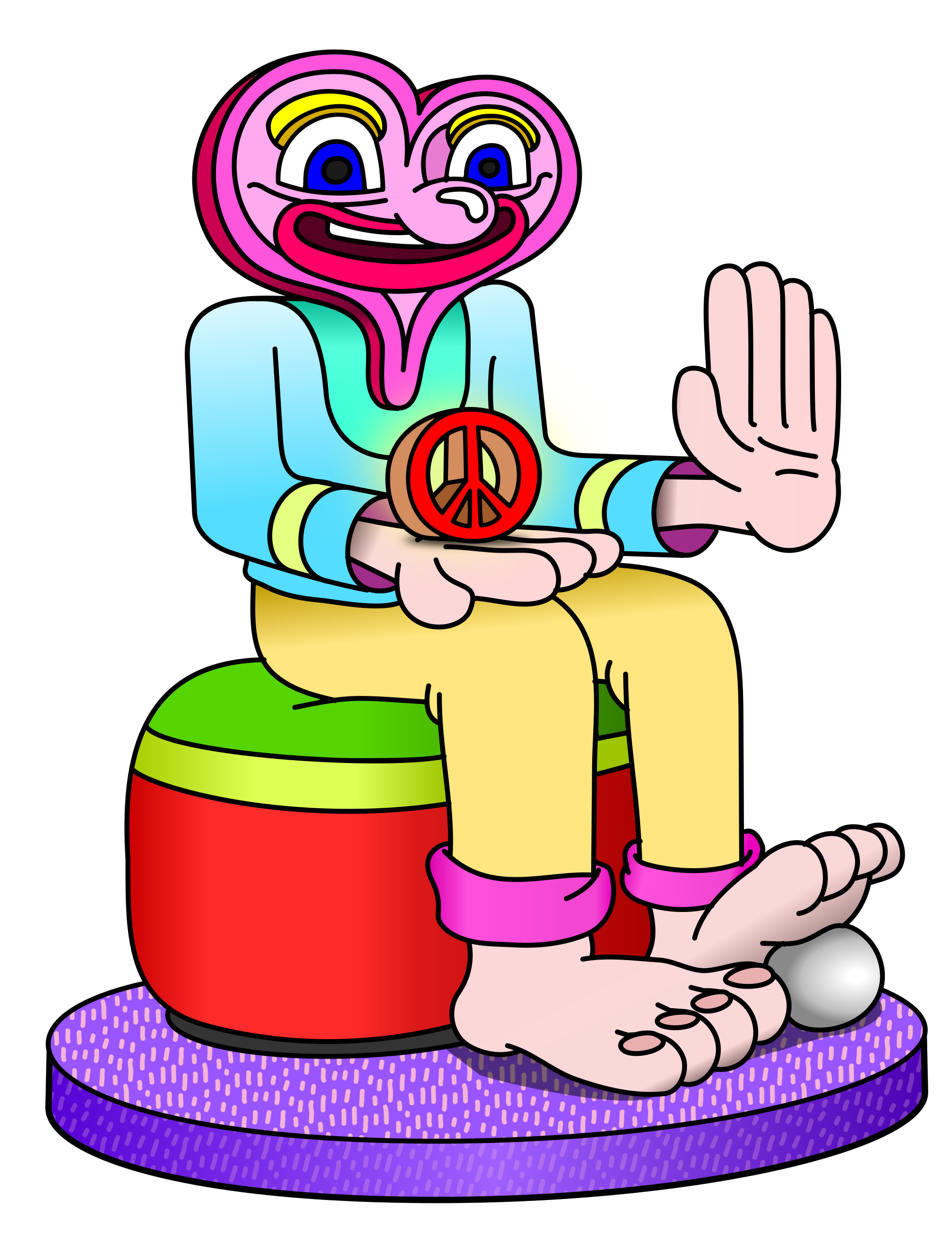 - love peace symbol character drawing heart cœur amour seating seat meditation cartoon