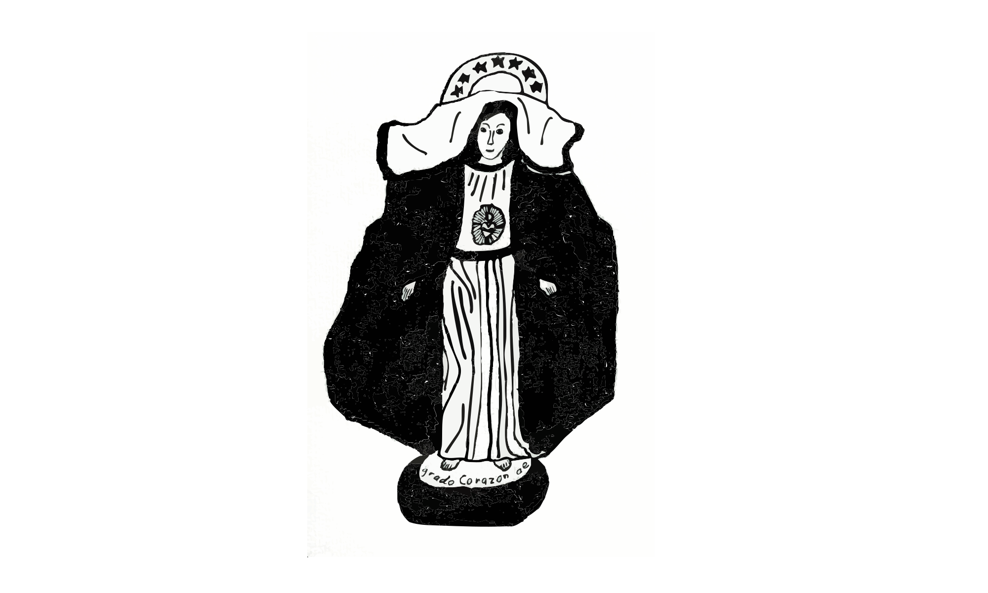 This a a vector image of Mother Mary. I had drawn it with black ink analog from a small figure I have owned. The original image is hand drawn. You can use it for all your projects.