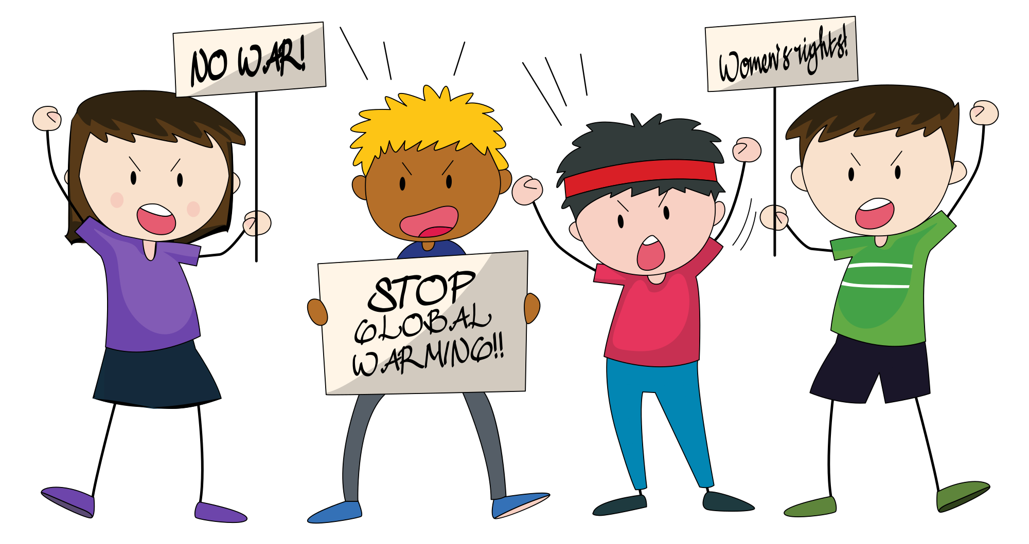 kids protesting common important issues of our time, added text to make it look like a real protest and added one kid to make more balance