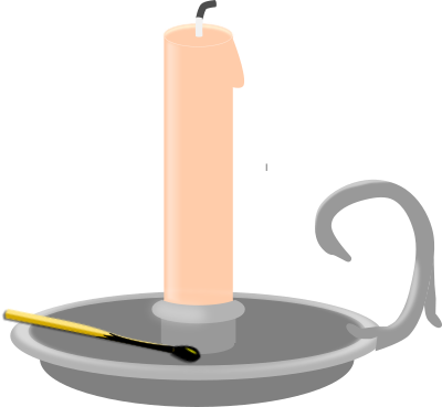 partially used, unlit pink candle in a portable candle holder with a burned match in the tray