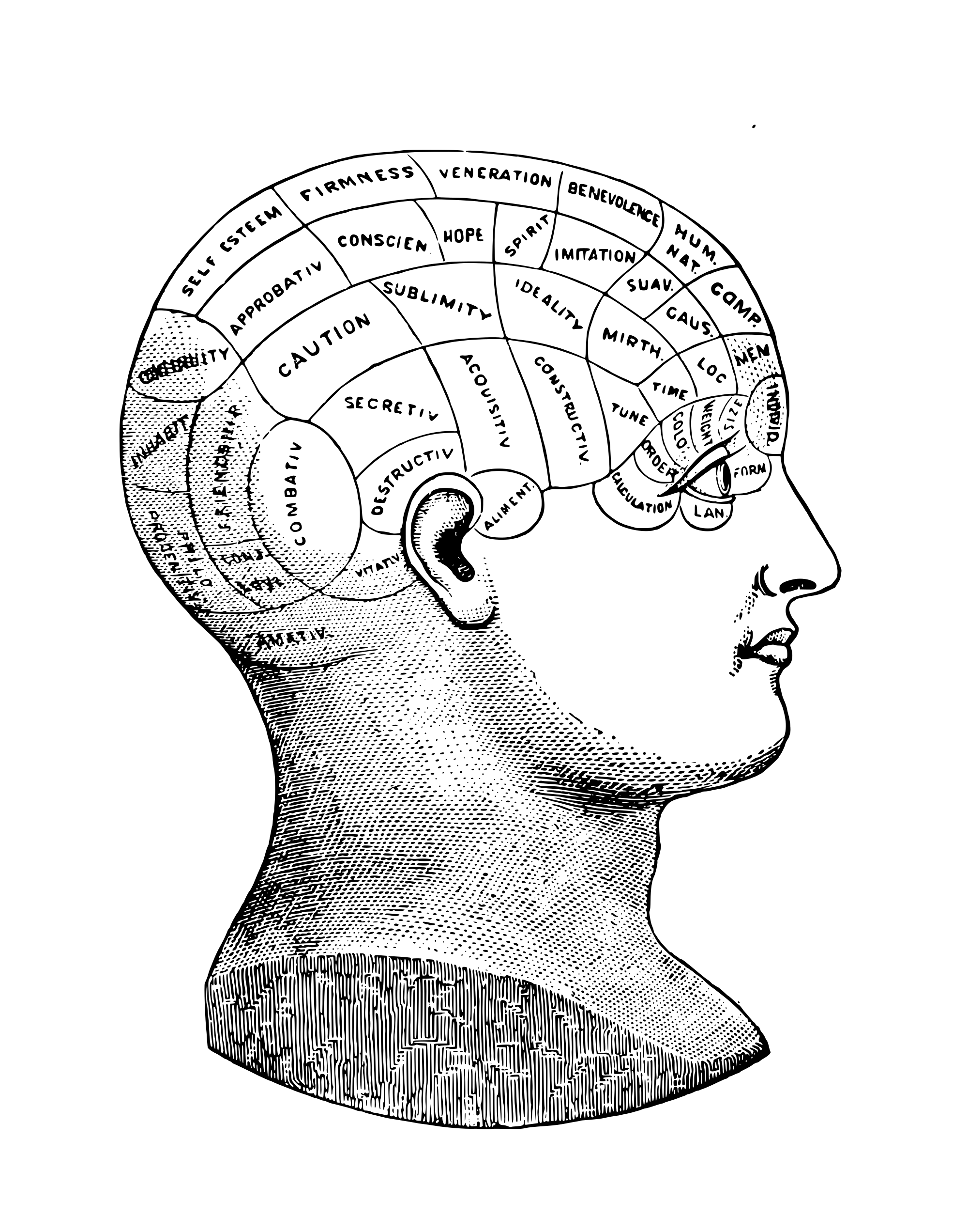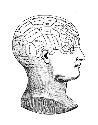 phrenology is the old quack science of using bumps and regions to predict mental traits etc