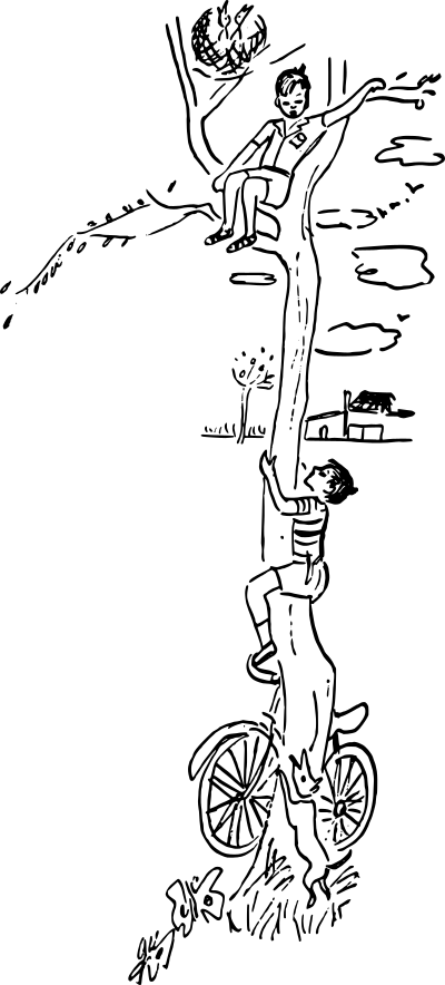 - boy climbing tree childhood play climb boys bicycle neighborhood retro vintage 1950s