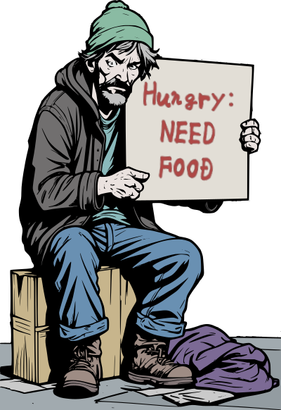 a hungry unhoused man letting people know