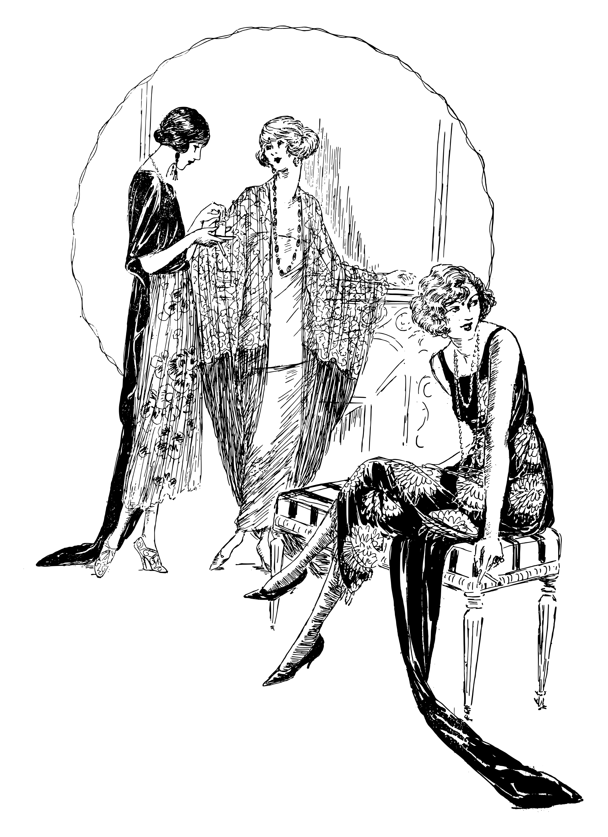 three women in the cutting edge style of their time
