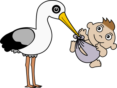 a colour version of this baby delivery stork