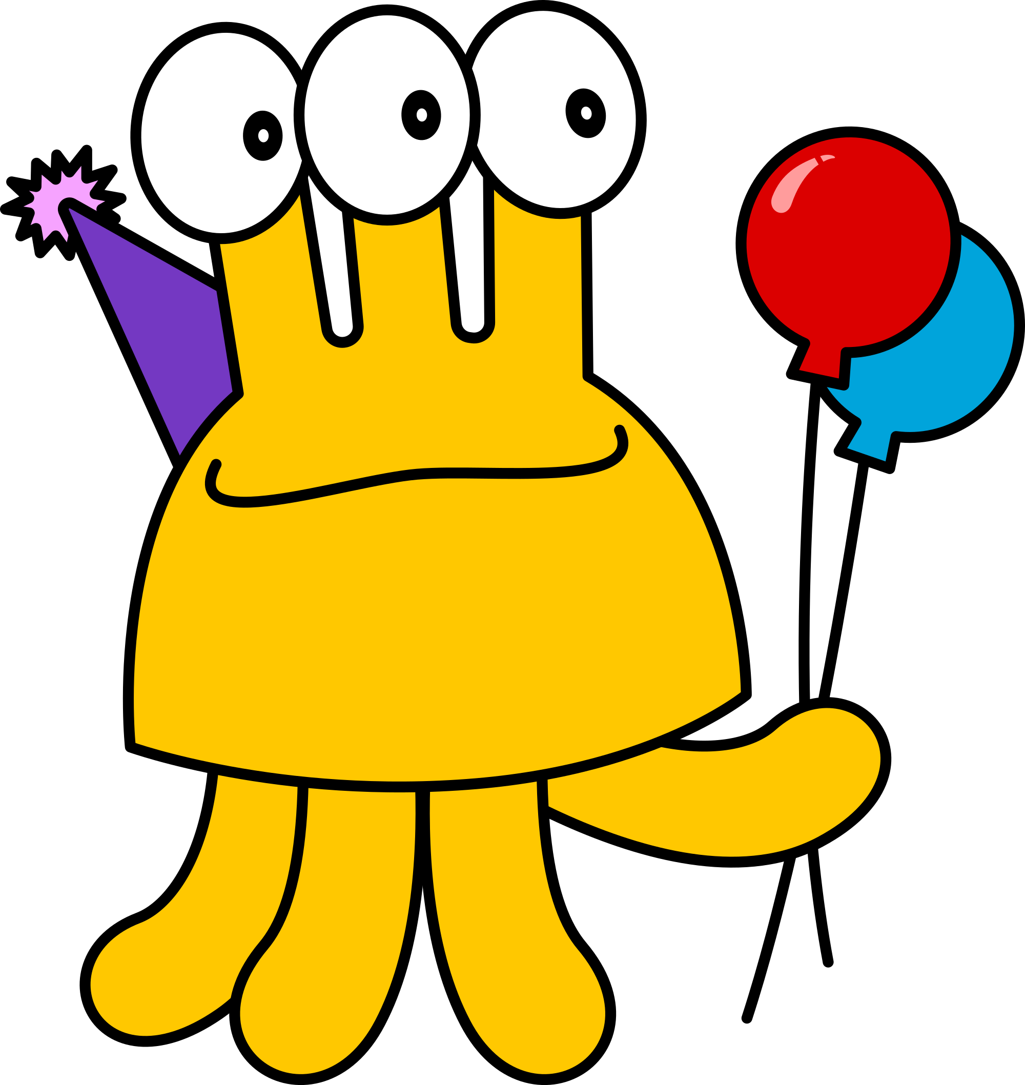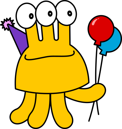 Yellow cartoon monster holding two balloons. Remix of Birthday Monsters.