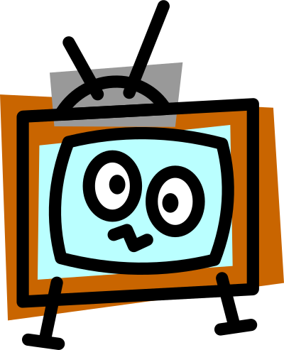 - television tv cartoon symbol icon monitor face antennae blue brown technology confused