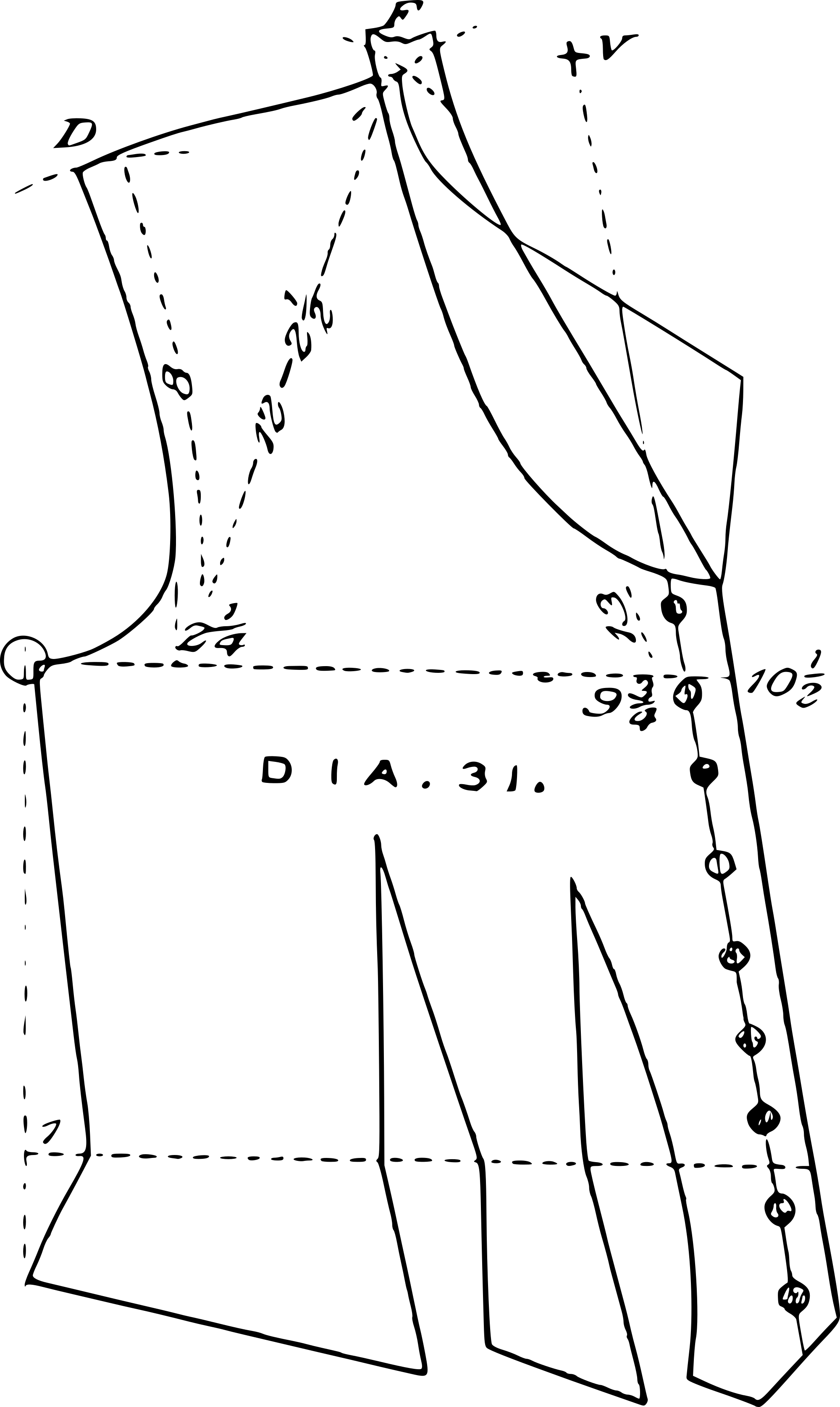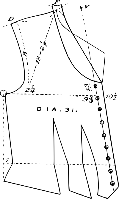 The pattern for a vest from https://archive.org/details/cutterspractical00vinc/page/n79/mode/1up , a 1892 pattern drafting manual.