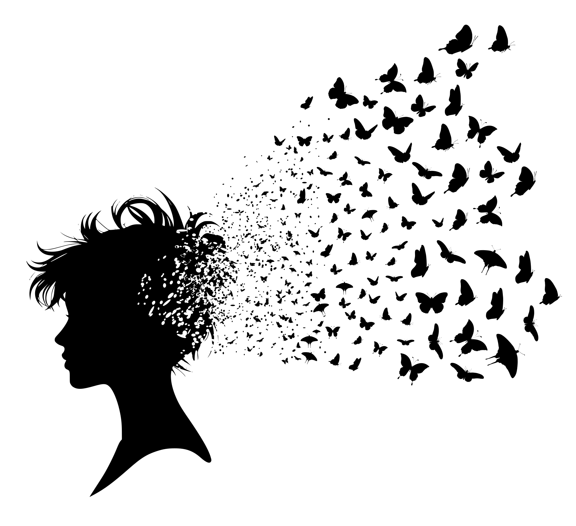 - butterfly silhouette head person man woman boy girl thoughts imagination butterflies remix+270024