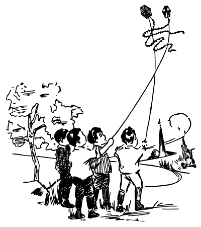 these kids are having a "kite battle" trying to fight each other with their kites (I even did that as a kid, but maybe it's a long lost way to play?)