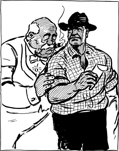 workingman being told something by his rich boss