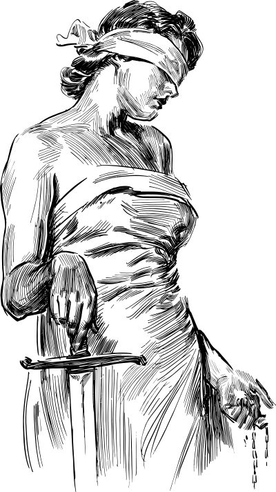 - Justitia Lady Justice Justice Law Legal Blind Blindfolded Judicial Scales Balance Weigh Judge Ethics Morals Morality Woman Female Human Line Art