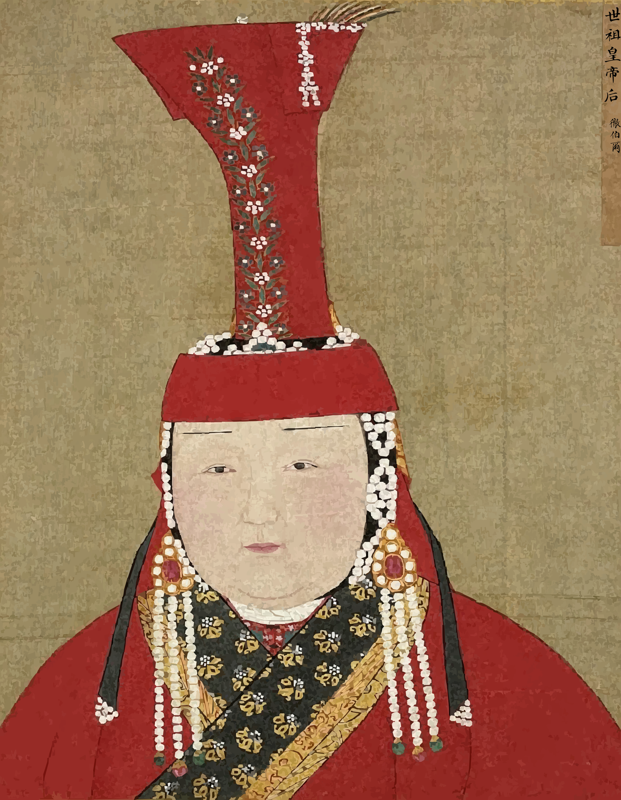 This is based on a depiction of Chabi who was an empress consort of the Mongol-led Yuan dynasty of China, married to Kublai Khan