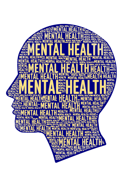 word art on a blue head that reads "MENTAL HEALTH"
