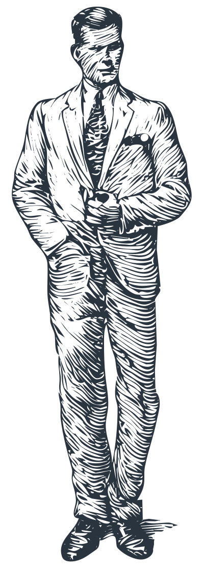 black & white image of a man in suit