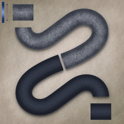 Snake skin pattern achieved by a pattern along path effect.With two base patterns included in the drawing, and extra gradient bent and filters.