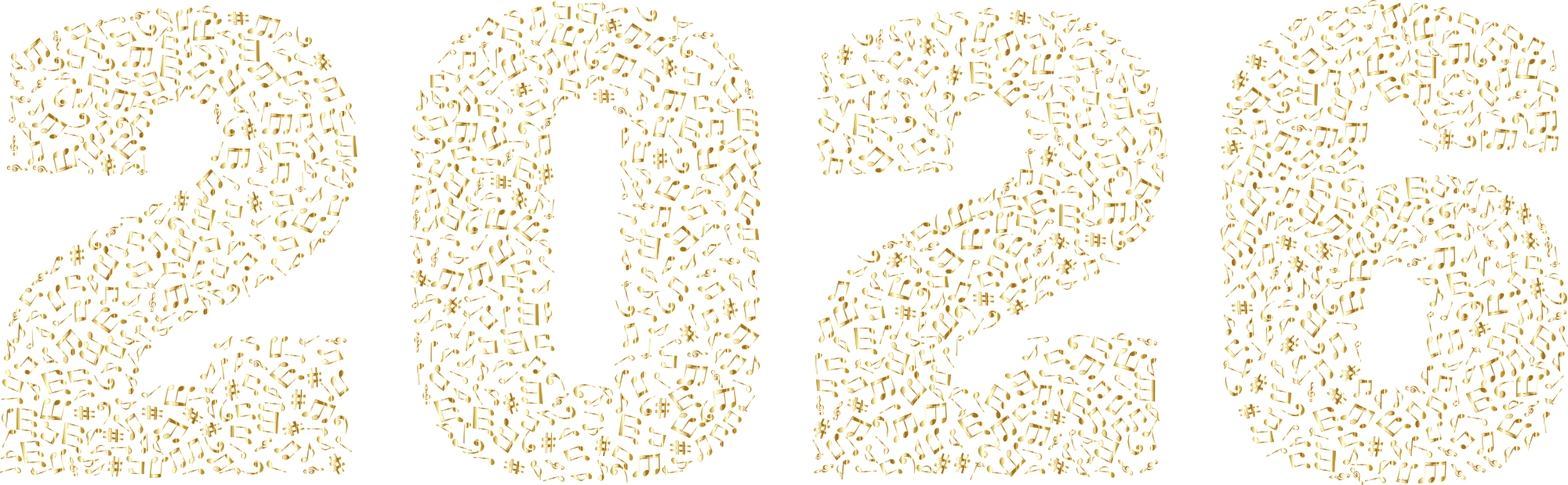 2026 Musical Notes Typography Gold