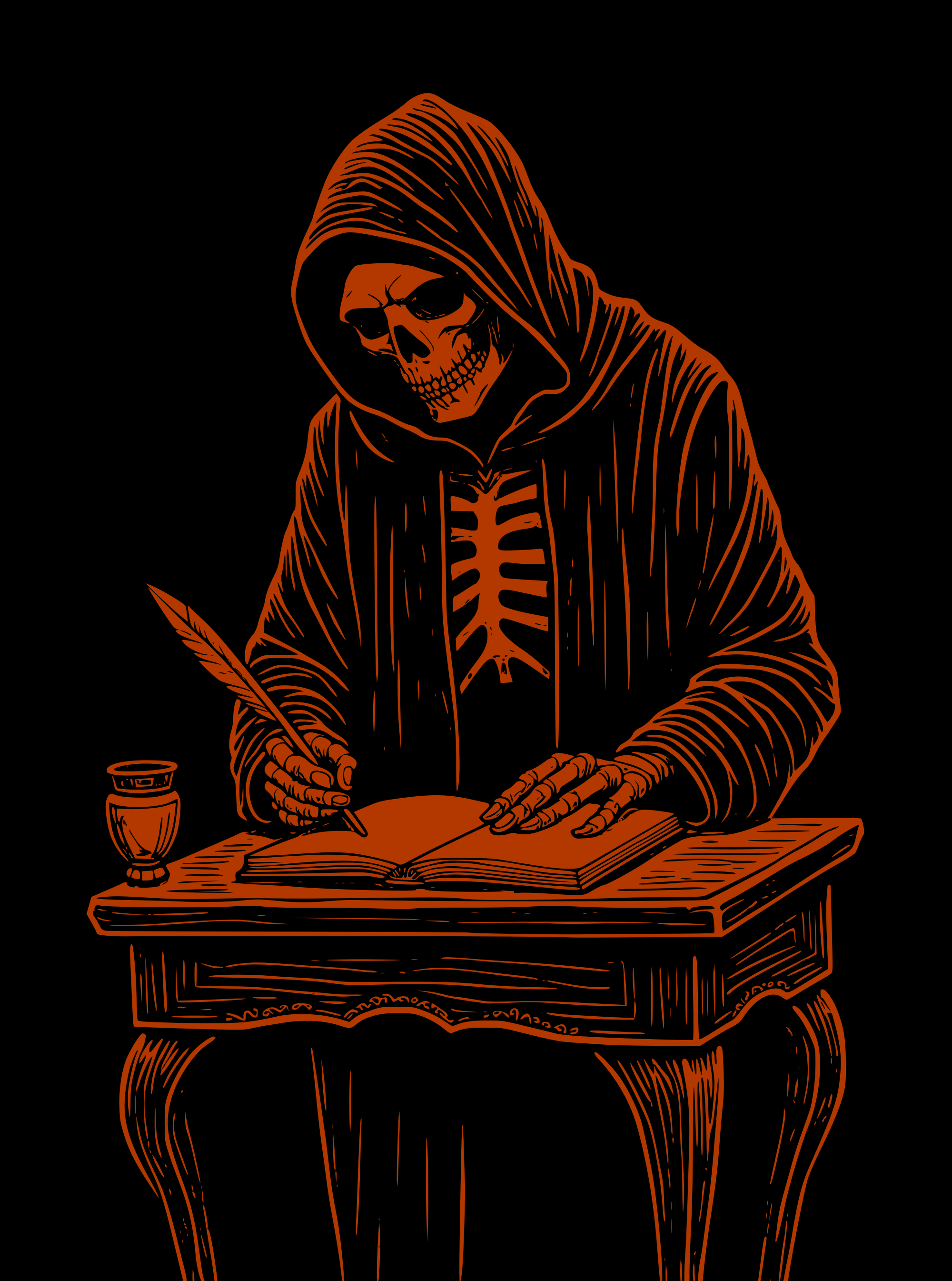Death writing at a desk