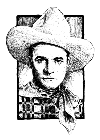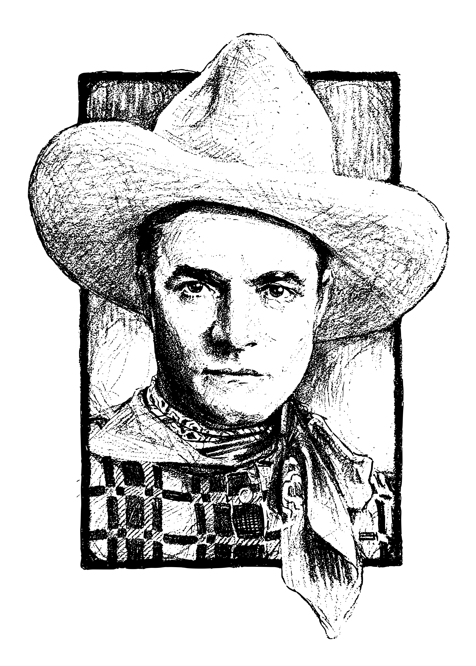 an old depiction of a cowboy in a white hat