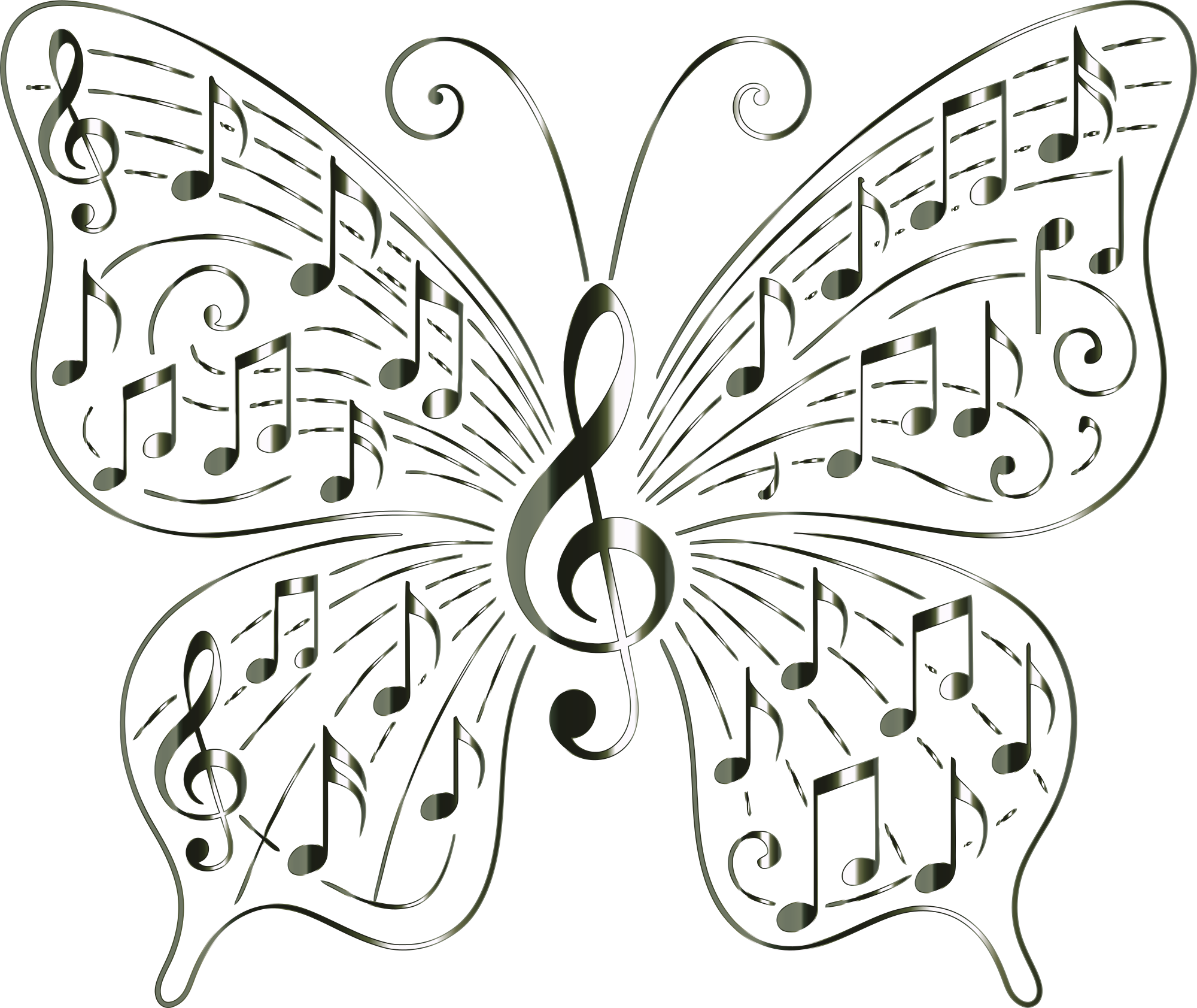 Music Butterfly Vectorized Lacquered Chrome No BG