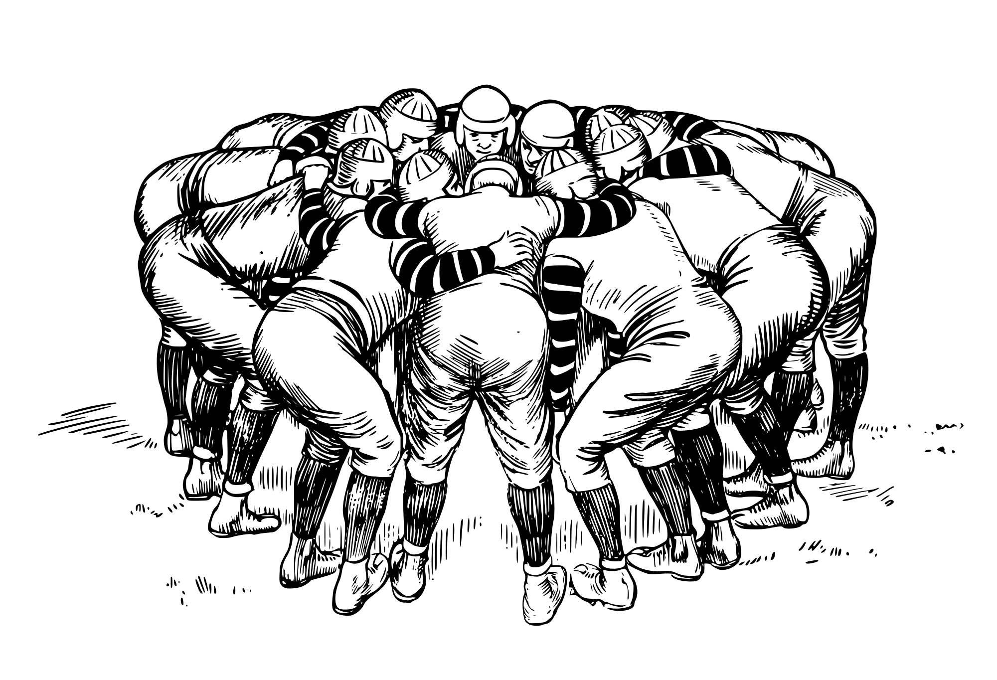a group of football men in a huddle