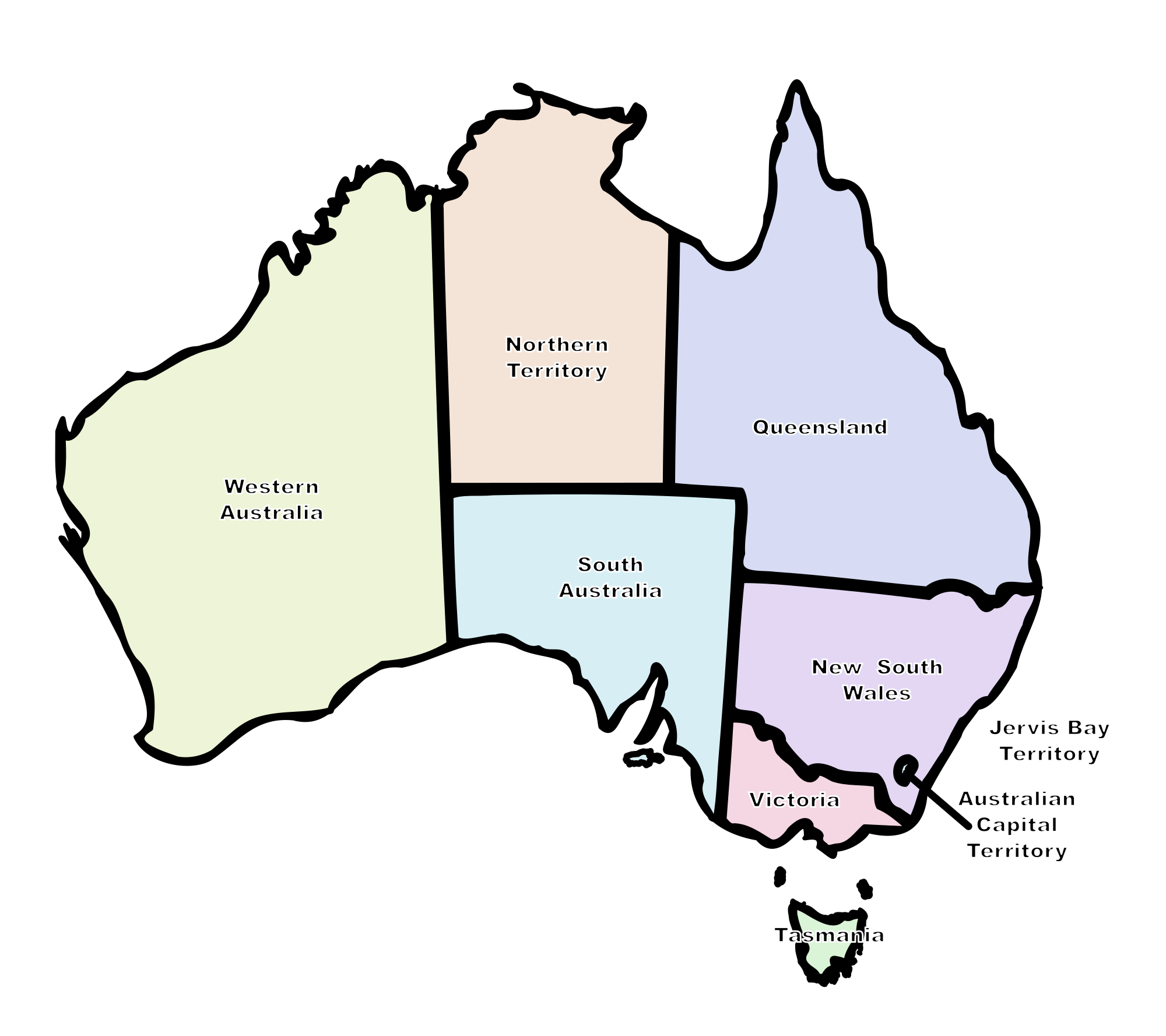 This is a map of Australia with the states (and territories!) labeled