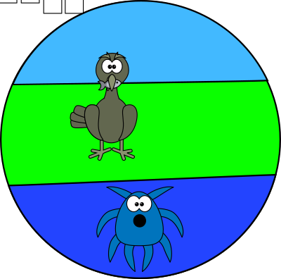 A globe with an octopus and heron inside.