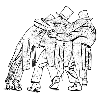 three drunk men walking