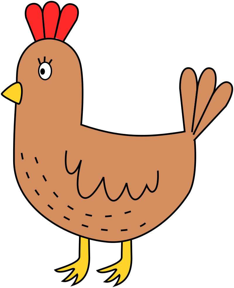 Simple brown chicken looking to the left, based on https://openclipart.org/detail/301312/cartoon-chicken edited in Inkscape, optimized in SvgOmg