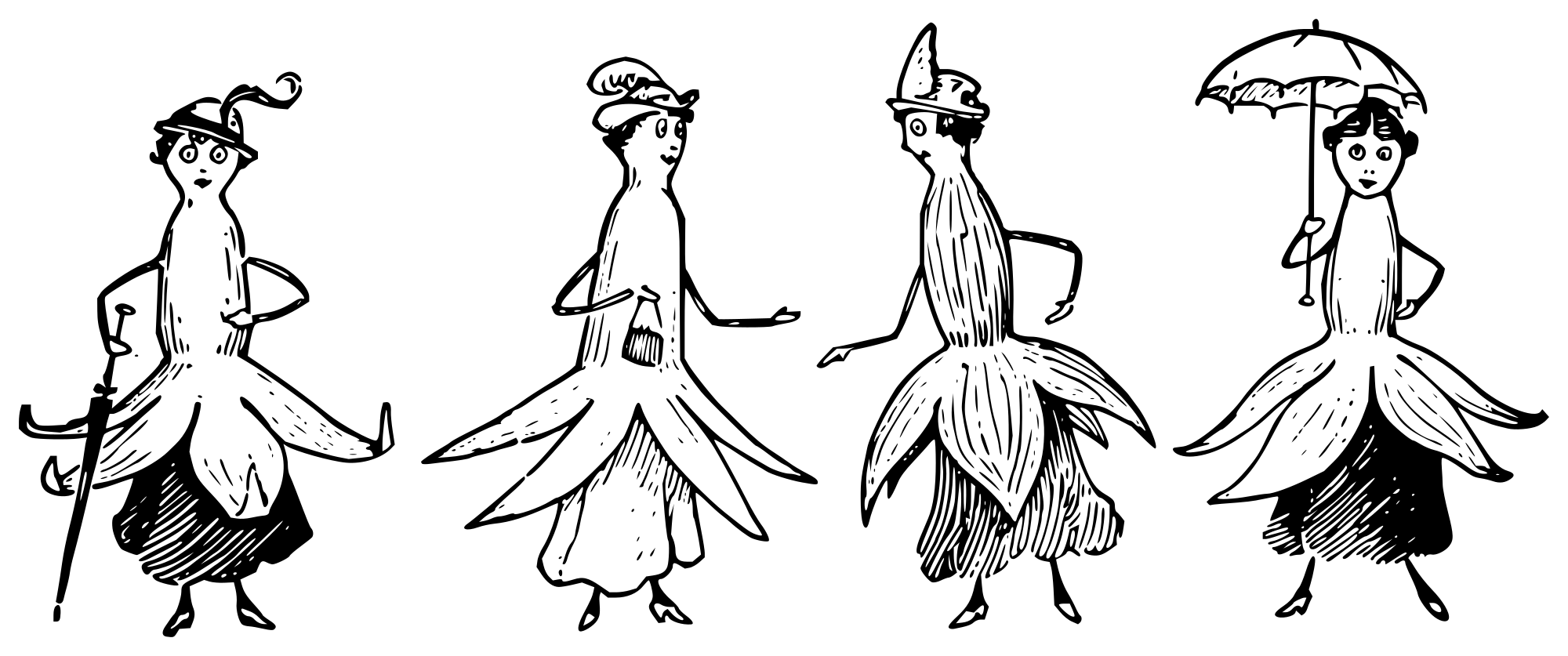 Image of fuchsia flower ladies from E. G. Lutz book "Drawing made easy", © 1921, page 37. Available at https://archive.org/details/drawingmadeeasyh00lutz/page/36/mode/2up