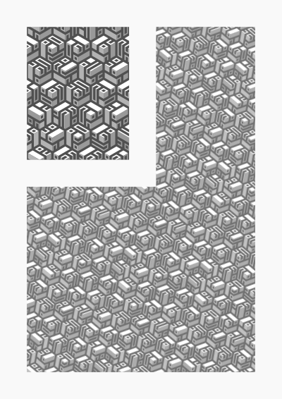 A pattern made of variations of the same cube.